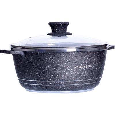 Кастрюля с крышкой MAYER BOCH изготовлена из литого алюминия, что исключает возможность деформации и гарантирует долгий срок службы. Утолщенное дно выполненное из алюминия, обеспечивает идеальный контакт с конфоркой и способствует равномерному разогреванию пищи. Мраморное антипригарное покрытие позволяет готовить практически не используя растительное масло, что значительно увеличивает полезность приготовляемой еды. В комплект также входит крышка из жаропрочного стекла с пароотводом.