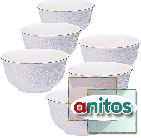 Набор салатниц 6 шт LR (х8). Материал: фарфор. Цвет: белый. Диаметр: D 15 см. Вес: 2,250 кг. Размер упаковки: 34,5 х 16 х15 см. Страна производитель: Китай.
