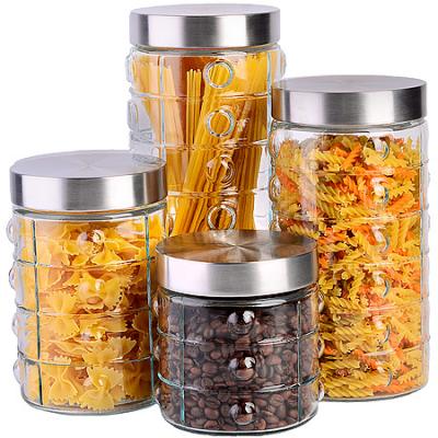 Набор банок для сыпучик продуктов 4пр стекло/нерж/ст MB (х4).
