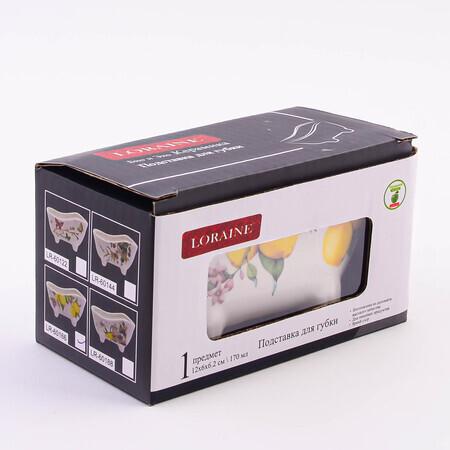 Подставка д/губки 170мл Лимонный праздник доломит LR (х72). Материал: доломит. Цвет: теплый белый, зеленый, желтый, золотистый. Рисунок: Лимоны. Объем: 170 мл. Длина: 12 см. Ширина: 6 см. Высота: 6,2 см.