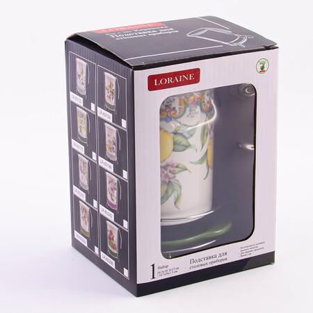 Подставка для столовых приборов LORAINE позволит комфортно и красиво хранить приборы на кухне. Органайзер для приборов комплектуется подставкой в форме стакана, которая изготовлена из качественной БИО и ЭКО доломитовой керамики и украшена красивым цветочным рисунком. Посуда, сделанная из доломита, поражает своей невесомостью, он совершенно безопасен: не выделяет никаких веществ, не имеет запаха. Круглое устойчивое основание на трех круглых ножках и ручка выполнены из металла. Вы можете установить ее в любом удобном месте на Вашей кухне, за счет хромированного покрытия изделие не будет ржаветь в условиях повышенной влажности. Кухонная подставка оснащена поддоном для слива воды, который предотвращает попадание влаги на столешницу и обеспечивает гигиеничность хранения приборов. Имеет продуманную конструкцию, позволяющую разместить все вилки, ложки и ножи в одном месте. Благодаря неповторимому дизайну она будет настоящим украшением любого стола. Подходит для мытья в посудомоечной машине. Изделие упаковано в индивидуальную коробку. Сушилка для столовых приборов идеальное решение для организации, хранения и сушки кухонных приборов! Оригинальный дизайн и красивое оформление позволит сделать подставку отличным подарком на любой праздник на 8 Марта, День рождения, 14 февраля, Новый год и любой праздник.
