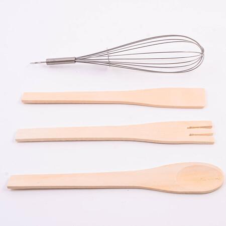 Подставка с кухонными приборами LORAINE позволит комфортно и красиво хранить приборы на кухне. В наборе 5 предметов: подставка из доломита, деревянная ложка, деревянная вилка, деревянная лопатка и металлический венчик. Кухонный инвентарь выполнен из дерева, которое идеально подходит для приготовления пищи. Кухонный набор комплектуется подставкой в форме стакана, которая изготовлена из качественной БИО и ЭКО доломитовой керамики и украшена красивым цветочным рисунком. Благодаря своей компактной конструкции, подставка с набором кухонных принадлежностей не только сэкономит место и сохранит порядок на вашей кухне, но и добавит уют и стильность в ваш интерьер. Подставку и венчик можно мыть в посудомоечной машине. Изделие упаковано в индивидуальную коробку. Оригинальный дизайн и красивое оформление позволит сделать набор отличным подарком на любой праздник на 8 Марта, День рождения, 14 февраля, Новый год и любой праздник.