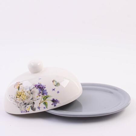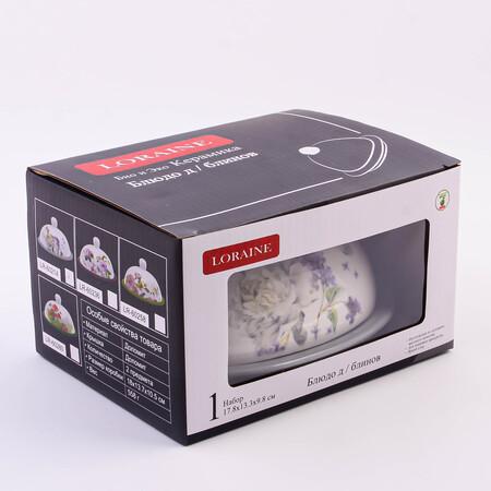 Масленка с крышкой LORAINE предназначена для хранения сливочного масла в холодильнике и подойдет для красивой сервировки стола. Масленка для сливочного масла изготовлена из БИО и ЭКО доломитовой керамики высокого качества и украшена красивым цветочным рисунком, который придаст настроения вашему чаепитию. Набор состоит из блюда и крышки. Емкость вместительная, элегантной формы с удобной ручкой на крышке. Крышка надежно закрывает блюдо, защищая масло от попадания влаги, посторонних запахов и заветривания. Под ней масла долго не испортится и сохранит свой первозданный вид и аромат. Также посуду можно использовать не только для хранения масла, но и сыра и колбасы. Оригинальный дизайн и качество исполнения сделают масленку настоящим украшением стола и подчеркнет прекрасный вкус хозяйки. Доломитовая посуда подходит для использования в микроволновой печи, холодильнике и посудомоечной машине. Невероятно очаровательная масленка украсит ваш стол и позволит сохранить сливочное масло свежим и вкусным длительное время круглый год. Изделие упаковано в индивидуальную коробку. Это настоящее произведение искусства прекрасно подойдет для вашей кухни и будет отличным подарком для друзей и близких.