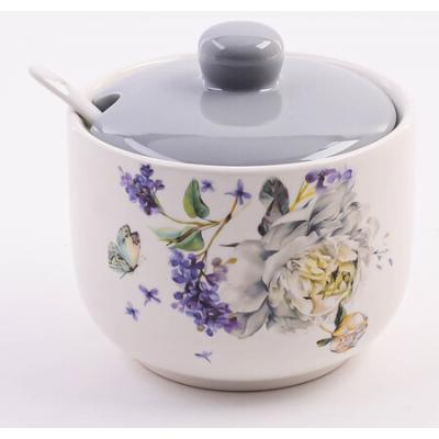 Сахарница с крышкой и ложкой LORAINE это отличное решение для хранения вашего сахара в чистоте и порядке. Изготовлена из БИО и ЭКО доломитовой керамики высокого качества и украшена красивым цветочным рисунком. Сахарница закрывается удобной крышкой, благодаря которой содержимое надежно защищено от влаги и высыхания. В комплекте идет небольшая керамическая ложечка, которая помогает удобно дозировать нужное количество сахара. Оригинальный дизайн и качество исполнения сделают такую емкость для сахара, варенья, меда настоящим украшением стола к чаепитию. Изделие упаковано в индивидуальную коробку. Подходит для мытья в посудомоечной машине. Доломитовая посуда для сахара это отличное решение для тех, кто хочет сохранить свои продукты в чистоте и порядке, а также придать своей кухне особый шарм.