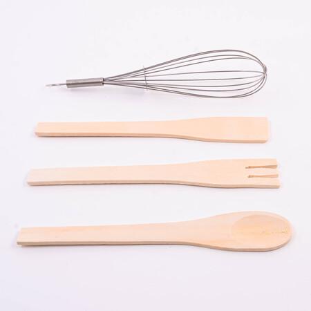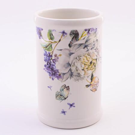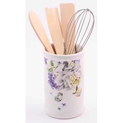 Подставка с кухонными приборами LORAINE позволит комфортно и красиво хранить приборы на кухне. В наборе 5 предметов: подставка из доломита, деревянная ложка, деревянная вилка, деревянная лопатка и металлический венчик. Кухонный инвентарь выполнен из дерева, которое идеально подходит для приготовления пищи. Кухонный набор комплектуется подставкой в форме стакана, которая изготовлена из качественной БИО и ЭКО доломитовой керамики и украшена красивым цветочным рисунком. Благодаря своей компактной конструкции, подставка с набором кухонных принадлежностей не только сэкономит место и сохранит порядок на вашей кухне, но и добавит уют и стильность в ваш интерьер. Подставку и венчик можно мыть в посудомоечной машине. Изделие упаковано в индивидуальную коробку. Оригинальный дизайн и красивое оформление позволит сделать набор отличным подарком на любой праздник на 8 Марта, День рождения, 14 февраля, Новый год и любой праздник.