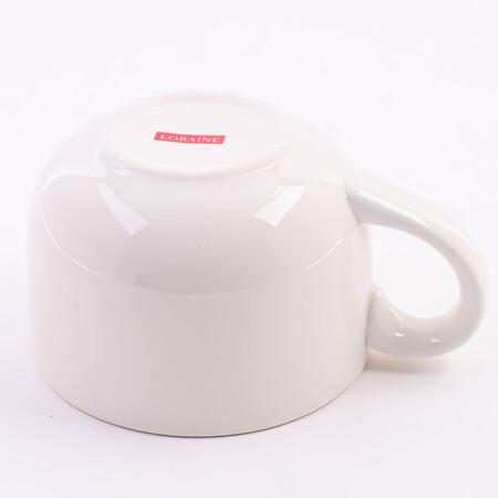 Кружка супница с ручкой LORAINE просто незаменимый помощник на кухне любой современной хозяйки, он обладает множеством достоинств. Эстетичная круглая глубокая кружка изготовлена из БИО и ЭКО доломитовой керамики высокого качества и украшена красивым цветочным рисунком. Доломит один из лучших материалов для использования в быту, долго сохраняет тепло, долговечен и отлично впишется в любой интерьер кухни. Большая кружка предназначена для подачи супа, бульона, каши, окрошки, соуса, крема или салата. Может использоваться в качестве чашки для чая, кофе, компота и других напитков. Бульонница из доломита идеальный вариант для подачи порционного холодца или заливного к новогоднему столу, на пикнике, на даче или просто для посиделок в кругу семьи, с родными и друзьями. Оригинальный дизайн и качество исполнения сделают бульонницу настоящим украшением стола и подчеркнет прекрасный вкус хозяйки, а также станет отличным подарком. Изделие упаковано в индивидуальную коробку. Кружка для супа подходит для использования в микроволновой печи, холодильнике и посудомоечной машине.