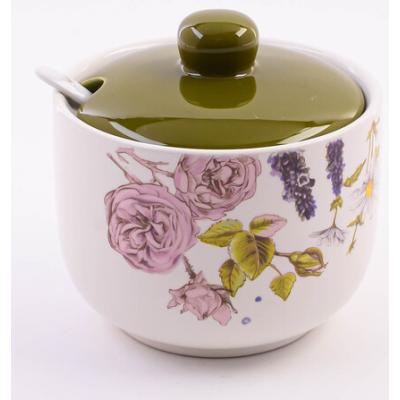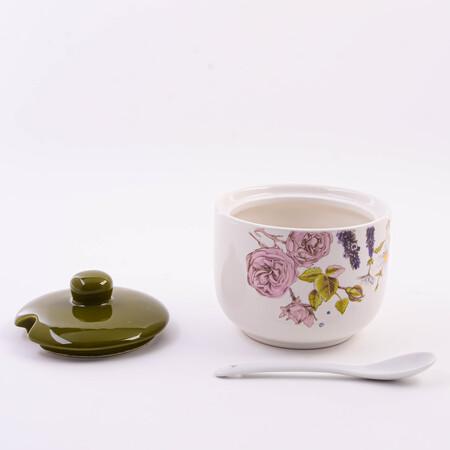 Сахарница с крышкой и ложкой LORAINE это отличное решение для хранения вашего сахара в чистоте и порядке. Изготовлена из БИО и ЭКО доломитовой керамики высокого качества и украшена красивым цветочным рисунком. Сахарница закрывается удобной крышкой, благодаря которой содержимое надежно защищено от влаги и высыхания. В комплекте идет небольшая керамическая ложечка, которая помогает удобно дозировать нужное количество сахара. Оригинальный дизайн и качество исполнения сделают такую емкость для сахара, варенья, меда настоящим украшением стола к чаепитию. Изделие упаковано в индивидуальную коробку. Подходит для мытья в посудомоечной машине. Доломитовая посуда для сахара это отличное решение для тех, кто хочет сохранить свои продукты в чистоте и порядке, а также придать своей кухне особый шарм.
