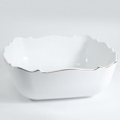 Блюдо сервировочное LORAINE – это стильное решение для любого торжества. Этот элемент декора создаст атмосферу роскоши на вашем празднике. Посуда для сервировки изготовлена из керамики высокого качества. Окантовка золотого цвета придает изделию особый шик и элегантность, подчеркивая его премиальность. Благодаря своим размерам 28,5х28,5х9,5 см блюдо для подачи подойдет для легких закусок, фруктов, овощей, свежей выпечки, десертов, печенья, сыров, салатов, и даже для таких блюд как шашлык, плов, картофель, блюда из рыбы и мяса – эта посуда сервировочная справится со всеми кулинарными задачами. Блюдо прямоугольное LORAINE сочетает в себе функциональность и эстетику. Возможность мытья в посудомоечной машине делает уход за ним максимально простым и удобным. Практичность и удобство использования делают эту посуду для сервировки незаменимым помощником на кухне. Такое декоративное блюдо обязательно понравится тем, кто ценит практичность и красоту в одном предмете. Это блюдо сервировочное белое может стать замечательным подарком для истинных ценителей эстетики и оформления стола. Оно подарит радость от каждой трапезы и будет радовать глаз своей изысканностью. Добавьте нотку элегантности и уюта вашему столу вместе с LORAINE!