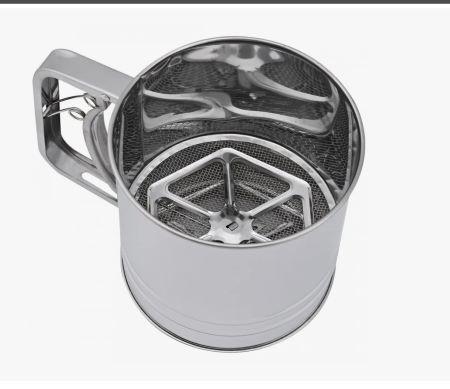 Современная кружка сито — идеальный помощник на кухне. Она предназначена для тщательного просеивания муки, крупы и других сыпучих продуктов. Особенность этой кружки — двойное дно с тонкой сеткой, которая обеспечивает идеальное просеивание. Для удобства использования кружка оснащена инновационной ручкой с пружиной, активирующей вращающиеся лопасти внутри. Благодаря этому процессу просеивания становится проще и быстрее. Этот дизайнерский аксессуар исключает необходимость трясти сито, предотвращая рассыпание муки по кухне. При нажатии на ручку лопасти равномерно распределяют продукт, одновременно разбивая комочки. Изготовлена кружка сито из долговечной нержавеющей стали, она компактна и легка — весит всего 231 граммов. Такой аксессуар легко поместится на любой кухне и станет незаменимым помощником в приготовлении различных блюд.