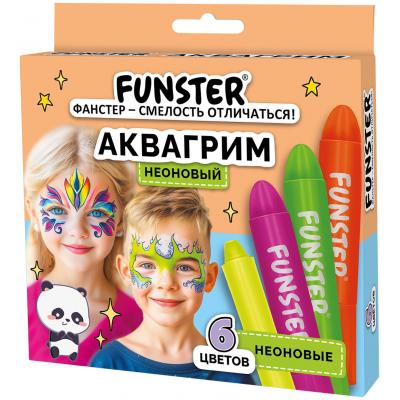 Аквагрим для лица и тела, 6 НЕОНОВЫХ цветов, FUNSTER (ФАНСТЕР), легко смываются, 192573
