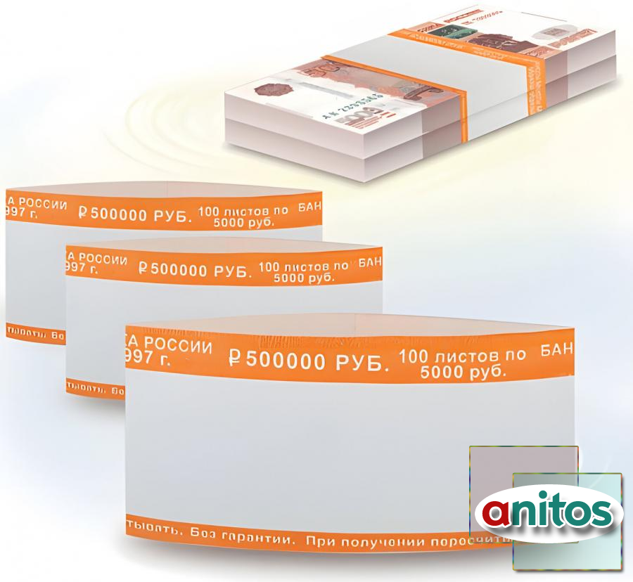 Банковская упаковка, исполненная в виде склеенной кольцевой поперечной бандероли с нанесением количества банкнот и номинала, а так же другой обязательной информации. Позволяет кассиру быстро, просто и надежно сформировать корешок банкнот (100 листов).