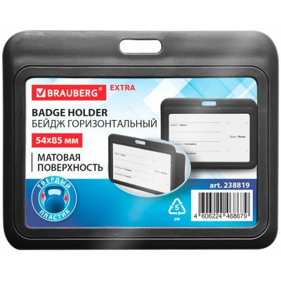 Бейдж горизонтальный (54х85 мм), черный, МАТОВАЯ ПОВЕРХНОСТЬ, brauberg extra, 238819