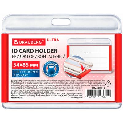 Бейдж горизонтальный для пропуска и ID-карт, 54х85 мм, красный, BRAUBERG ULTRA, 238915