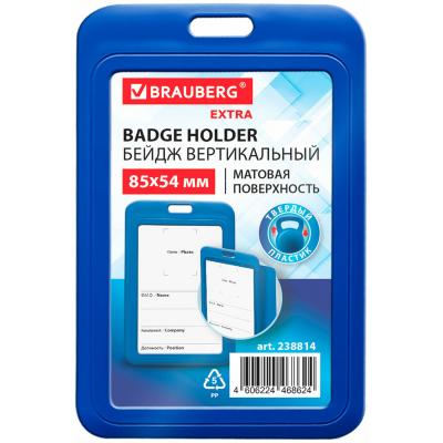 Бейдж вертикальный (85х54 мм), синий, МАТОВАЯ ПОВЕРХНОСТЬ, brauberg extra, 238814