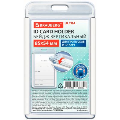 Бейдж вертикальный для пропуска и ID-карт, 85х54 мм, белый, BRAUBERG ULTRA, 238913