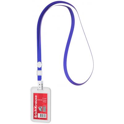 Бейдж вертикальный erich krause (54х85 мм), корпус прозрачный, цвет ленты синий, 63728