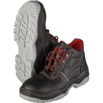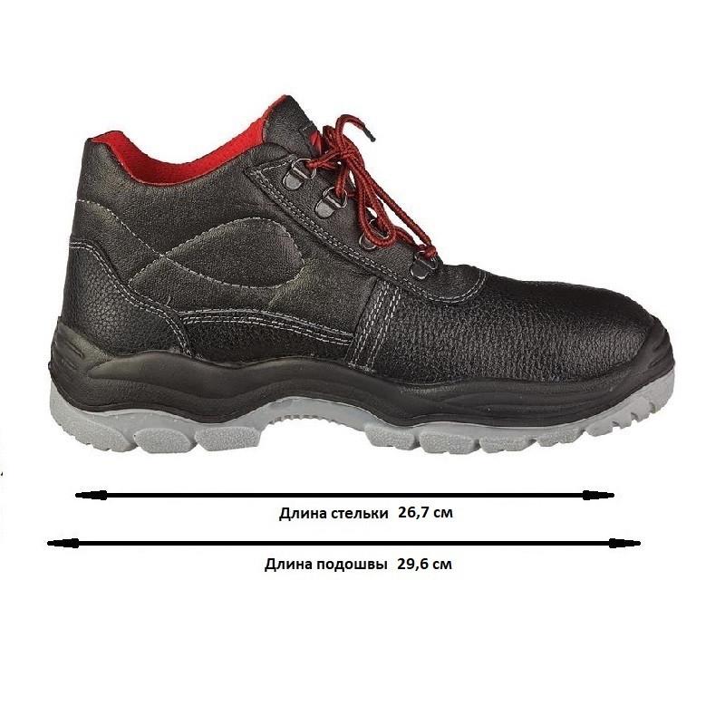 Верх обуви изготовлен из натуральной кожи и искусственных материалов. Ботинки имеют шнуровку и светоотражающую вставку для повышения видимости. Подносок металлический, защищает от ударов силой до 200 Дж.