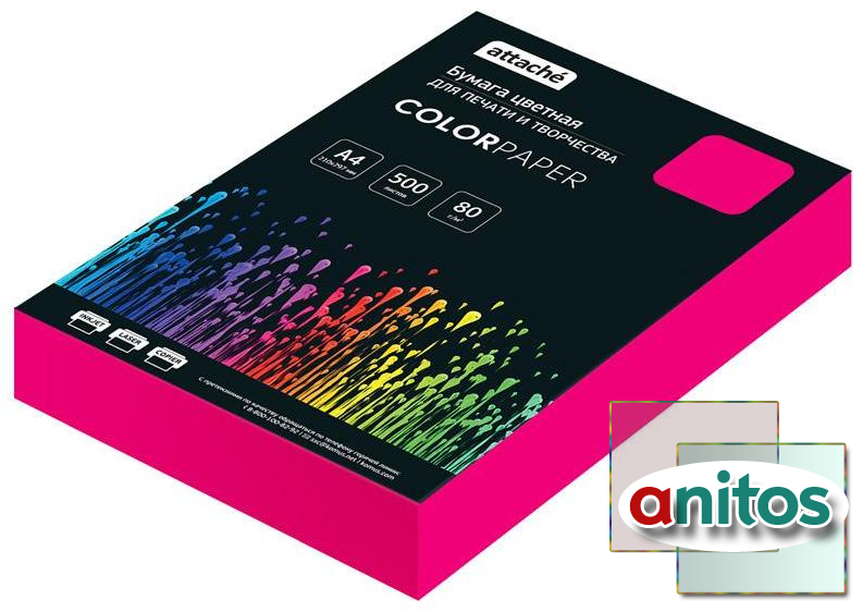 Бумага цветная Attache (розовый интенсив), 80г, А4, 500 л. Бумага для печати на всех видах принтеров. Одна пачка содержит 500 листов формата А4, плотность которых составляет 80 г/кв.м. Цветопередача монитора может искажать реальный цвет продукта.