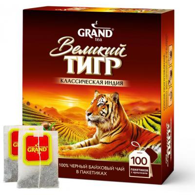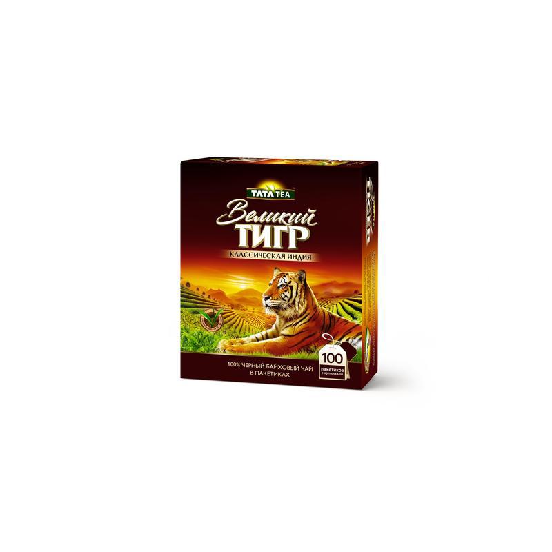 Чай ''Великий Тигр Классическая Индия'': 100% черный байховый чай с насыщенным цветом и умеренно терпким вкусом, который дарит заряд бодрости и энергии. TATA TEA - бренд чая 1 в Индии, который знают и любят миллионы людей по всему миру, представляет для вас чай ''Великий Тигр''. Мастера чайного дела мирового уровня отбирают лучшие сорта чая и создают особый купаж насыщенного и ароматного чая ''Великий Тигр''. В упаковке содержится 100 пакетиков чая. Условия хранения: Хранить в сухом месте при относительной влажности не более 70%, в плотно закрытой упаковке, отдельно от сильнопахнущих продуктов. Температурный режим не установлен. Производитель: ООО 'Санти' под контролем Tata Global Beverages Limited.