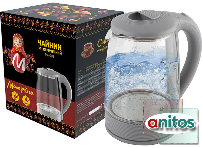 Чайник электрический МАТРЁНА MA-009 (2,0 л) стекло серый