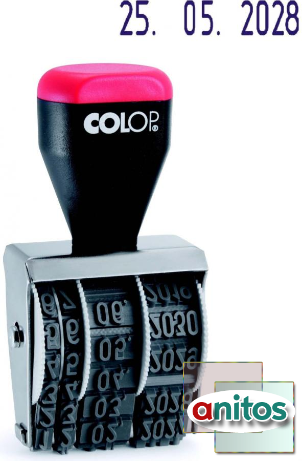 Датер ручной цифрово Colop 05000 Bank (шрифт 5 мм, оттиск 531 мм)<br><br>Удобная рукоятка, металлический корпус. Для получения оттиска предварительно окрашивается при помощи настольной штемпельной подушки. Дата устанавливается вручную при помощи колесиков. Используются для проставления даты производства, срока годности. Оттиск однострочный. Размер оттиска — 531 мм.