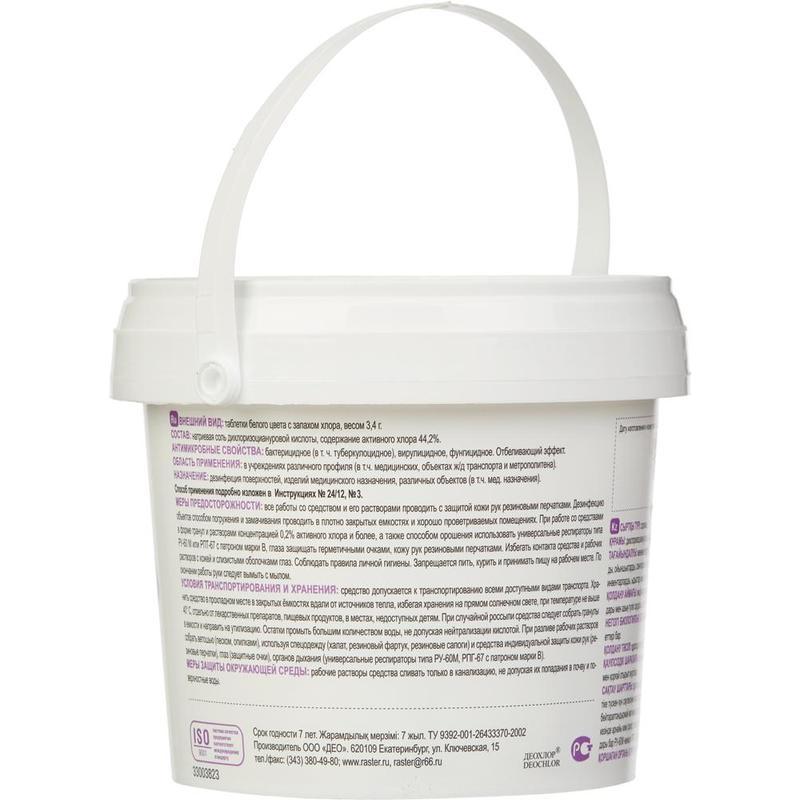 Универсальное средство для общей дезинфекции. Действующее вещество: натриевая соль дихлоризоциануровой кислоты. Свойства: бактерицидные, в том числе туберкулеза (Mycobacterium B5, Mycobacterium terrae), вирулицидные (в отношении возбудителей полиомиелита), фунгицидные (в отношении грибов и плесеней). Назначение: дезинфекция поверхностей в помещениях, предметов обстановки, поверхностей приборов и аппаратов, дезинфекция посуды, в том числе лабораторной и другие, дезинфекция и отбеливание белья, дезинфекция санитарно-технического оборудования, уборочного материала и инвентаря, изделий медицинского назначения; медицинских отходов, биологических жидкостей и другие. Область применения: ЛПО (лечебно-профилактические организации) любого профиля (в т.ч. отделения неонтологии, отделения переливания крови, стоматологические отделения и др.); предприятия водоснабжения и канализации; образовательные учреждения (в т.ч. учреждения дошкольного образования) и другие. Длительный срок хранения: 85 месяцев (7 лет), срок хранения растворов 9 суток. Режим обработки поверхностей орошением из аэрозольных распылителей из расчета 10 мл/м.куб. Смывание раствора с поверхностей не требуется. Прописан режим дезинфекции поверхностей камер для сбора мокроты, плевательниц в противотуберкулезных учреждениях, имеется режим дезинфекции систем вентиляции и кондиционирования воздуха.