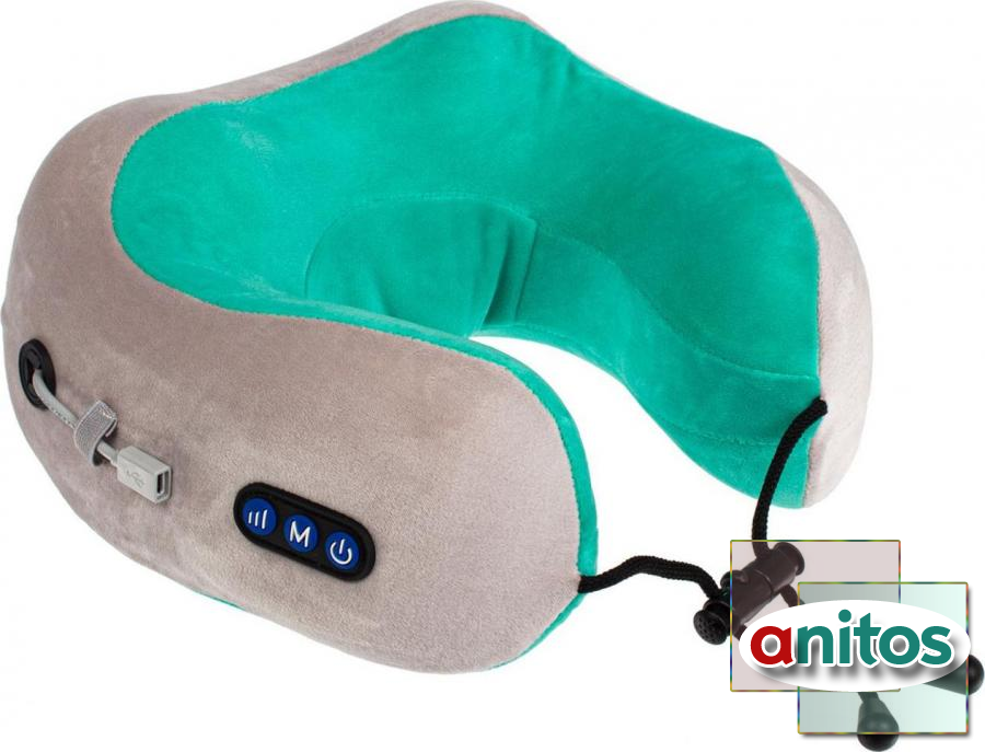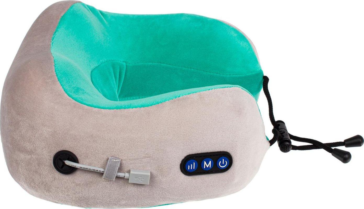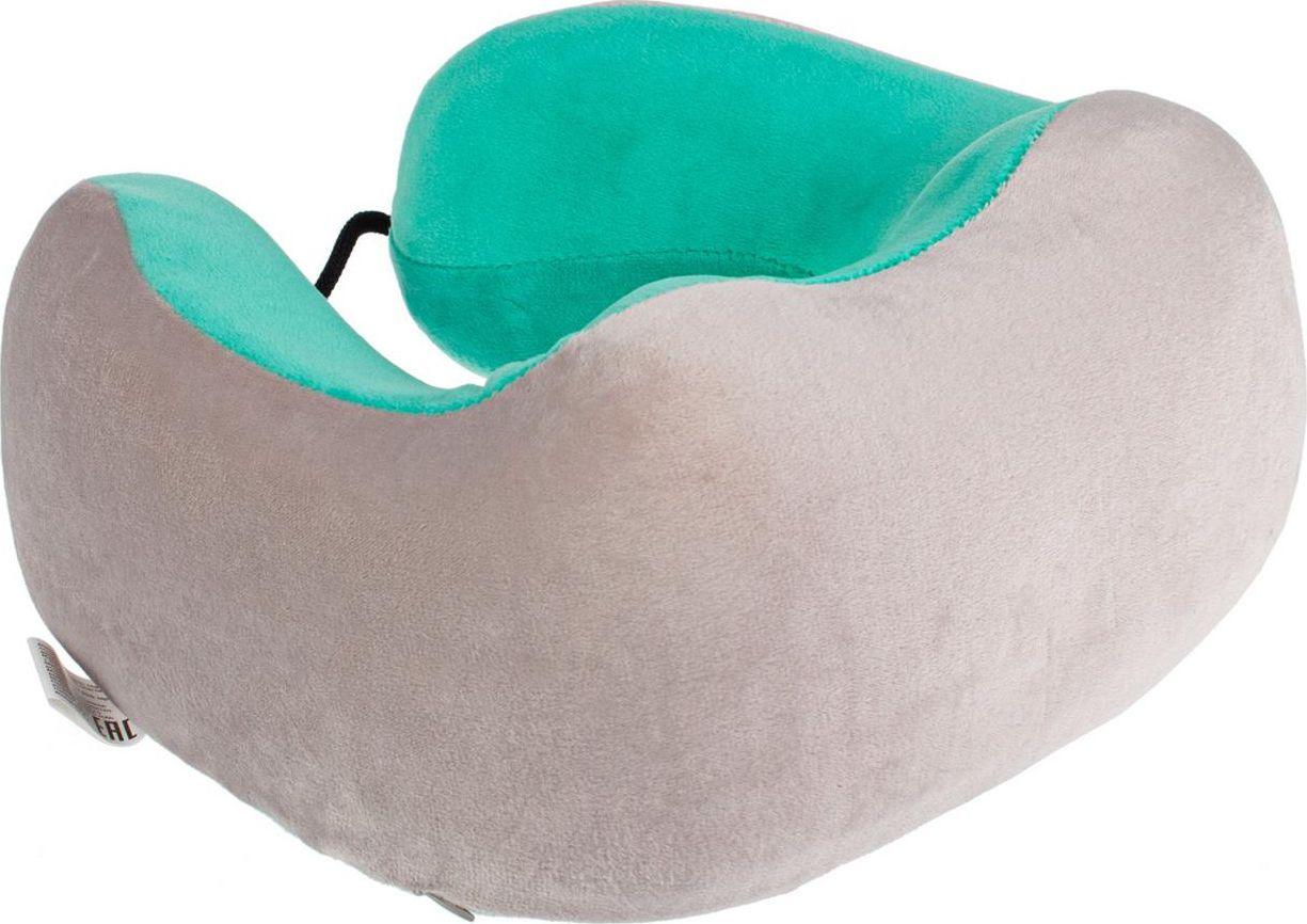 Дорожная подушка-подголовник для шеи с завязками, серо-зелёная