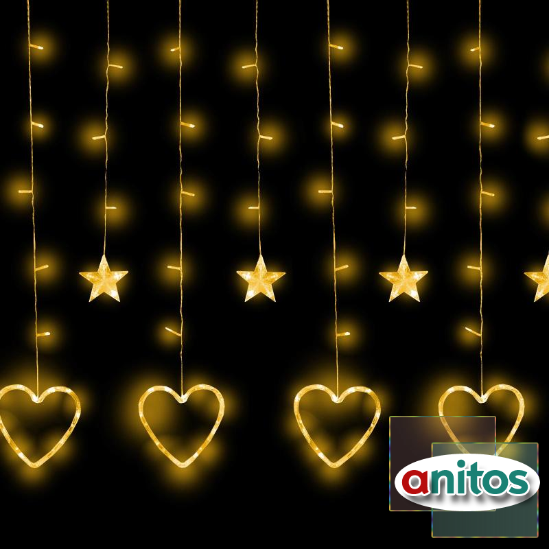 Электрогирлянда Бахрома 2.4x0.9 м Сердце,ip20,186led,теп бел,8 реж 4356978