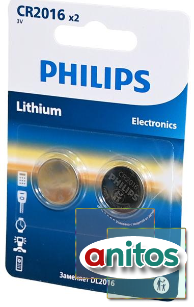 Элемент питания PHILIPS Lithium CR2016P2/51 BL2