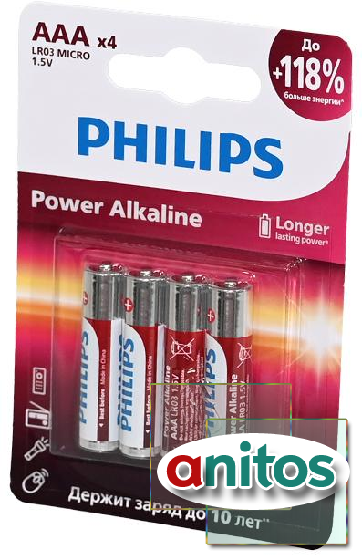 Элемент питания PHILIPS Power Alkaline LR03P4B/51 LR03 BL4