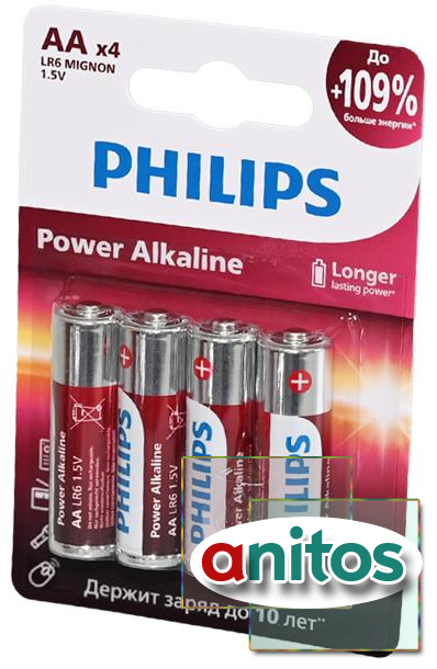 Элемент питания philips power alkaline lr6p4b/51 lr6 bl4