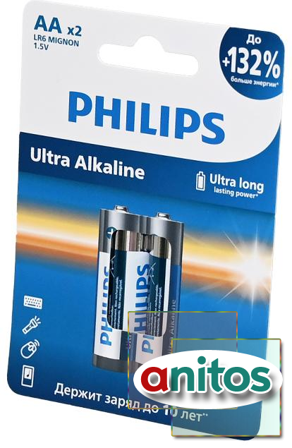 Элемент питания philips ultra alkaline lr6e2w/51 lr6 bl2