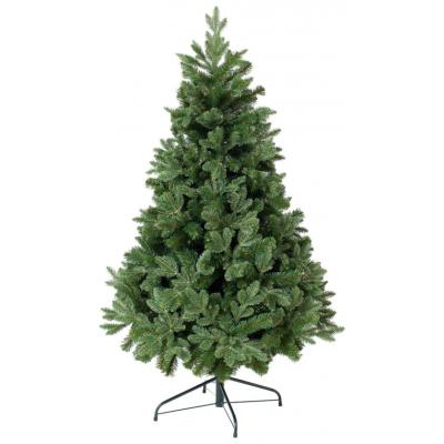 Искусственная напольная ёлка высотой 150 см выполнена из комбинированной хвои зелёного цвета. Ветви на внешней стороне кроны изготовлены из литой резины с округлой формой, а ближе к стволу — из плёнки ПВХ. Такое сочетание материалов обеспечивает объём, плотность и реалистичный внешний вид ели. Крона пышная, ствол визуально скрыт. Хвоя гипоаллергенна, не имеет запаха, не поддерживает горение, в комплект входит противопожарный паспорт.