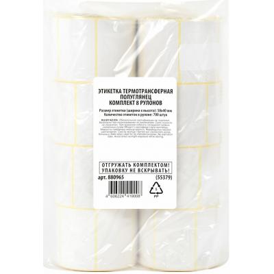 Этикетки термотрансферные, ПОЛУГЛЯНЕЦ, 58х40 мм, КОМПЛЕКТ 8 рулонов по 700 этикеток, 880965