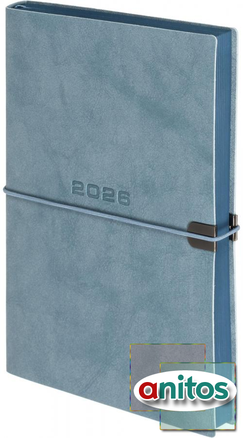 Ежедневник датированный 2026 год Escalada искусственная кожа А5 176 листов голубой с фиксирующей резинкой (голубой обрез)<br><br>Обложка: мягкий переплёт, блинтовое тиснение, обстрочка по периметру — нет, скруглённый корешок, прямые углы обложки. Внутренний блок: ниткошвейный, белый офсет 70 г/кв.м, печать в две краски (линия), прямые углы блока, перфорация углов блока — нет, справочный материал — есть. Красочность форзаца: печать пантоном. Отделка среза: окрашивание пантоном. Закладка: одно ляссе. Каптал: есть. Особенности: в блоке использованы мотивирующие высказывания экстраординарной личности, предпринимателя и миллиардера, титулованного «Провидца века», шоумена и телеведущего, бывшего владельца конкурса красоты «Мисс Вселенная» и дважды президента США — Дональда Трампа, застёжка-резинка. Индивидуальная упаковка: промостикер + ПЭТ-пакет.