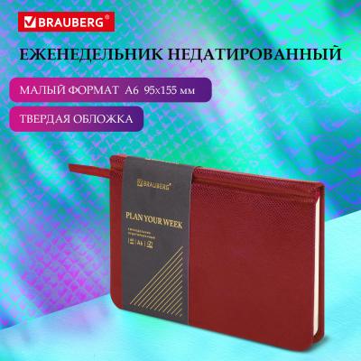 Еженедельник недатированный МАЛЫЙ ФОРМАТ 95х155 мм А6, brauberg "iguana", под кожу, 64 л., красный, 114481