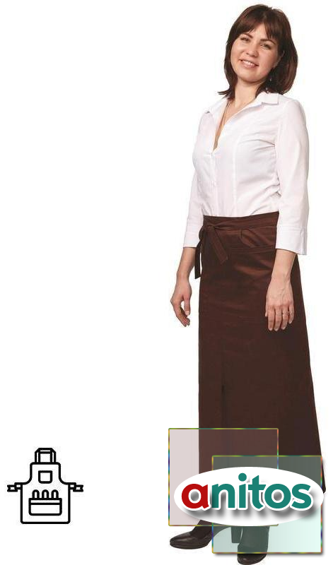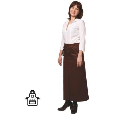 Фартук официанта универсальный длинный коричневого цвета, завязывающийся по талии поясом, с разрезом спереди для свободы движения и двумя накладными карманами. Изготовлен из смесовой ткани с водоотталкивающей пропиткой (65% полиэстер, 35% хлопок), плотностью 210 г/кв.м. Фартук из качественной и износостойкой ткани, подходит для работы в кафе, ресторанах, различных заведениях общепита. Отлично смотрится и хорошо защищает одежду вашего персонала. Рекомендации по уходу за изделием: стирать при температуре не выше 30 градусов, не отбеливать, отжимать в центрифуге при низкой температуре, гладить при средней температуре до 150 градусов. Можно использовать отбеливатель с содержанием нефти. Размер фартука 110x95.В коллекции представлены фартуки для офицантов в черном и коричневом цветах, варианты длины: короткий (45 см), средний (75 см) и длинный (95 см). Могут использоваться для парикмахеров.
