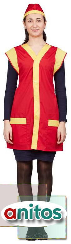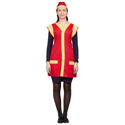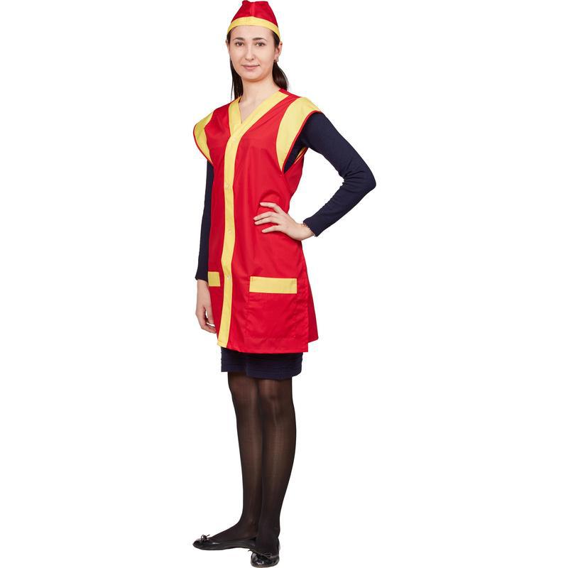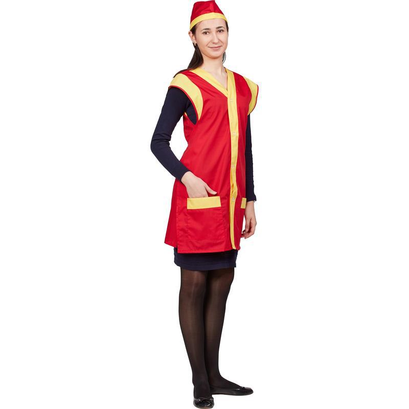 Фартук-сарафан для торговли с пилоткой всеразмерный красный