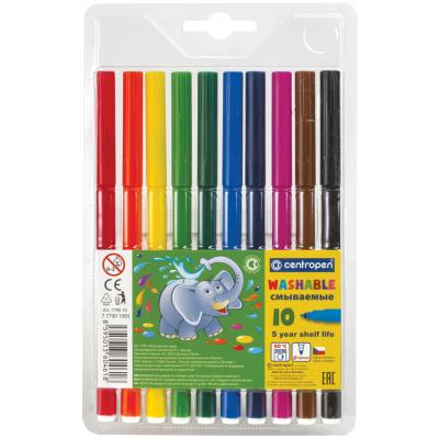 Фломастеры 10 ЦВЕТОВ centropen "washable", смываемые, вентилируемый колпачок, 7790/10tp, 777901085