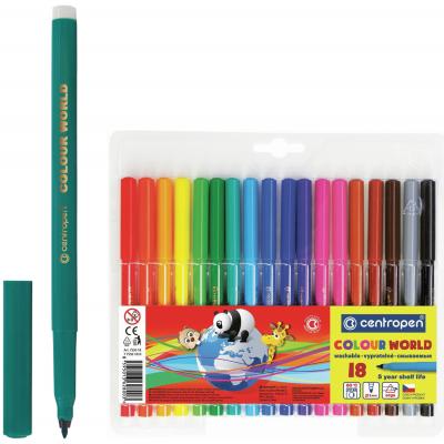 Фломастеры 18 ЦВЕТОВ centropen "colour world", круглые, смываемые, вентилируемый колпачок, 7550/18tp, 775501884