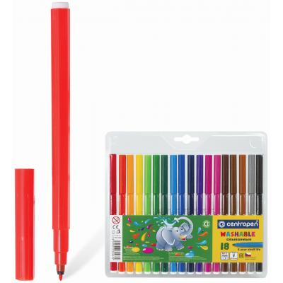 Фломастеры 18 ЦВЕТОВ centropen "washable", смываемые, вентилируемый колпачок, 7790/18tp, 777901885