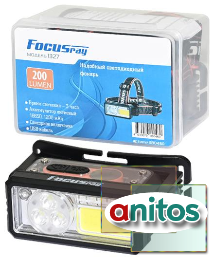 Фонарь focusray 890460 1327 налобный 3led+cob+4smd