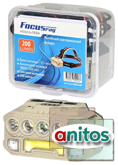 Фонарь focusray 890538 1334 налобный 4led+3cob