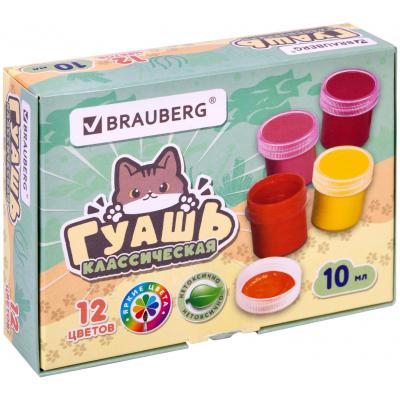 Гуашь brauberg "МИЛЫЕ КОТЫ", 12 цветов по 10 мл, 192640
