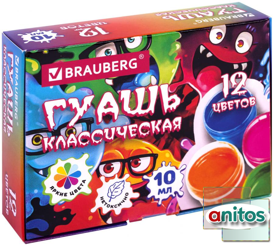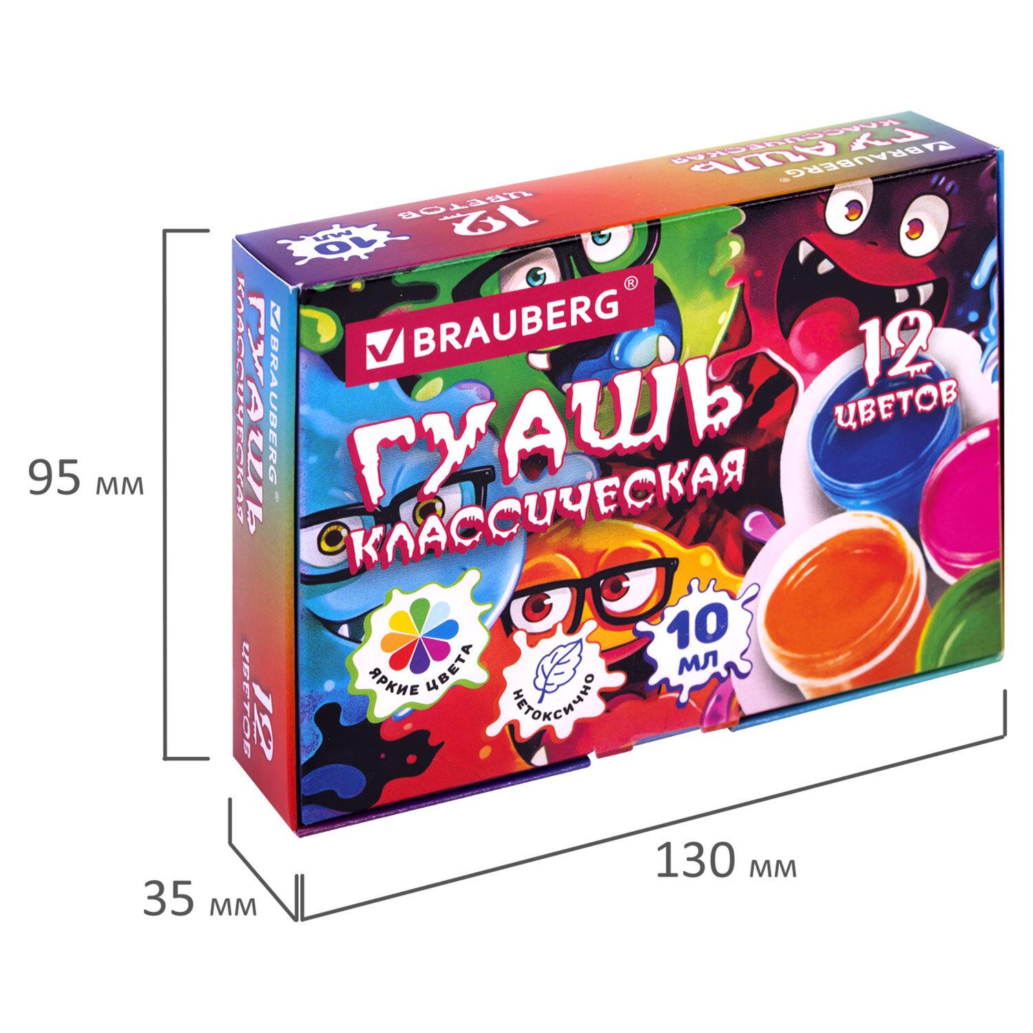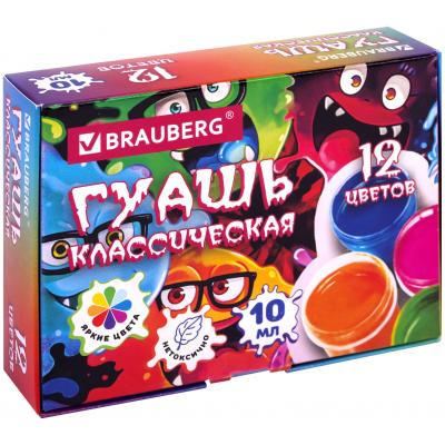 Гуашь brauberg "МОНСТРИКИ", 12 цветов по 10 мл, 192642