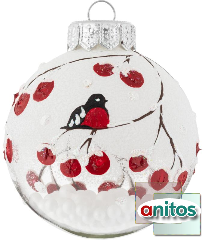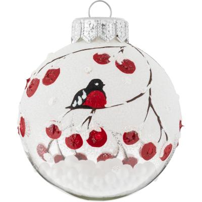 Ёлочный шар новогодний Коломеев Рябина на снегу стекло белый (диаметр 6.5 см)