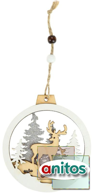Игрушка НГ Деревянная подвеска Зимняя опушка, 10 см, НУ-3895