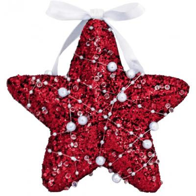 Ёлочная игрушка в виде яркой красной звёзды выполнена из пенопласта и имеет высоту 13.5 см. Звезда украшена блёстками и объёмными стразами, которые будут красиво сверкать и переливаться под светом гирлянд, создавая атмосферу праздника. Крупный размер игрушки позволяет ей выделяться среди других украшений, подчёркивая вкус декоратора. Она станет отличным сувениром, придавая подаркам праздничный вид. Благодаря пенопласту, игрушка лёгкая и безопасная — при падении она не разобьётся. Подвешивается за петельку, что делает её удобной для размещения на ёлке или в других новогодних композициях. Игрушка идеально подходит для украшения высотных ёлок.