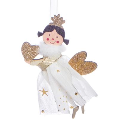 Чарующее украшение для вашей новогодней ёлки. Игрушка выполнена из дерева и текстиля, высотой 10 см, и обладает белоснежным одеянием, украшенным золотыми крыльями и нимбом, которые придают ей особое волшебство. Элементы с блёстками будут красиво сверкать и переливаться под светом гирлянд, создавая праздничную атмосферу. Игрушка идеально подходит для декорирования как ёлок стандартных размеров, так и высотных ёлок. Она может служить не только украшением для ёлки, но и стать оригинальным сувениром для упаковки подарков. Этот ангелочек напомнит о чудесах новогоднего времени и добавит уюта в ваш дом.