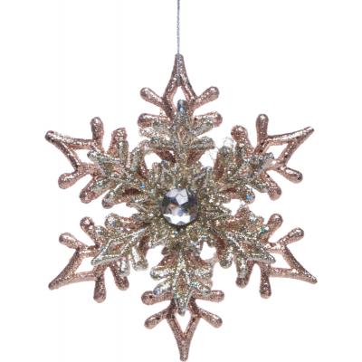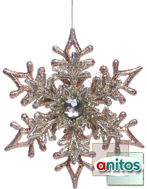 Золотистая снежинка, выполненная из пластика, высотой 11.5 см. Эта подвесная игрушка создаст сказочную атмосферу в вашем интерьере. Блестящий пластик, из которого она изготовлена, будет сверкать и переливаться в свете рождественских гирлянд и фонариков, придавая ёлке особое очарование и праздничный блеск. Игрушка будет эффектно смотреться среди зелёных веток ёлки, добавляя нарядности и волшебства. Она очень лёгкая и не разобьётся при случайном падении, что делает её безопасной для использования в домах с детьми и питомцами. Игрушка подвешивается за петельку и станет отличным украшением для вашего дома, а также прекрасным памятным подарком для близких. Материал пластик. Цвет золотистый. Размер 310.511,5 см.